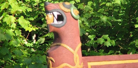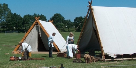 Vikingelandsbyens to store telte er rekonstruerede efter de to fund i Osebergskibet.